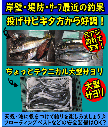 大アジ夕方好調・日中サバ・ワカシ多い