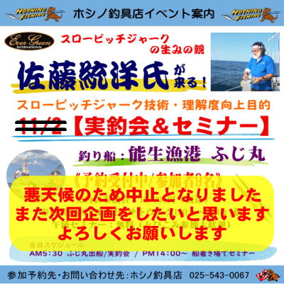 11/2(日)《佐藤統洋》さん実釣会・セミナー