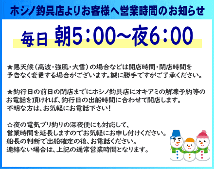 ※釣り船に乗船のお客様は、最終出船確認後にお電話をください。