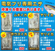 電気ブリ釣りで 針持の良さが人気のエサ ![]() ボウズイカ(小型サイズのイカ) 販売中! |