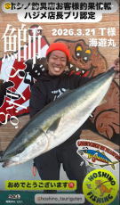 ![]() 2026.3.28 ブリ/ジギング ハジメ店長ブリ認定 |
