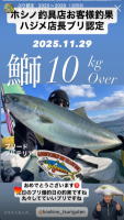 ![]() ![]() ![]() ![]() 2025.11.29~12.6. ホシノ釣具店ハジメ店長ブリ認定 |