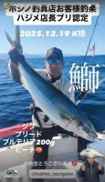 ![]() 2025.2.12 ジギング ブリ 8kg9kg10kg 石井さんグループ ハジメ店長ブリ認定♪ おめでとうございます♪♪ ステッカープレゼント! |